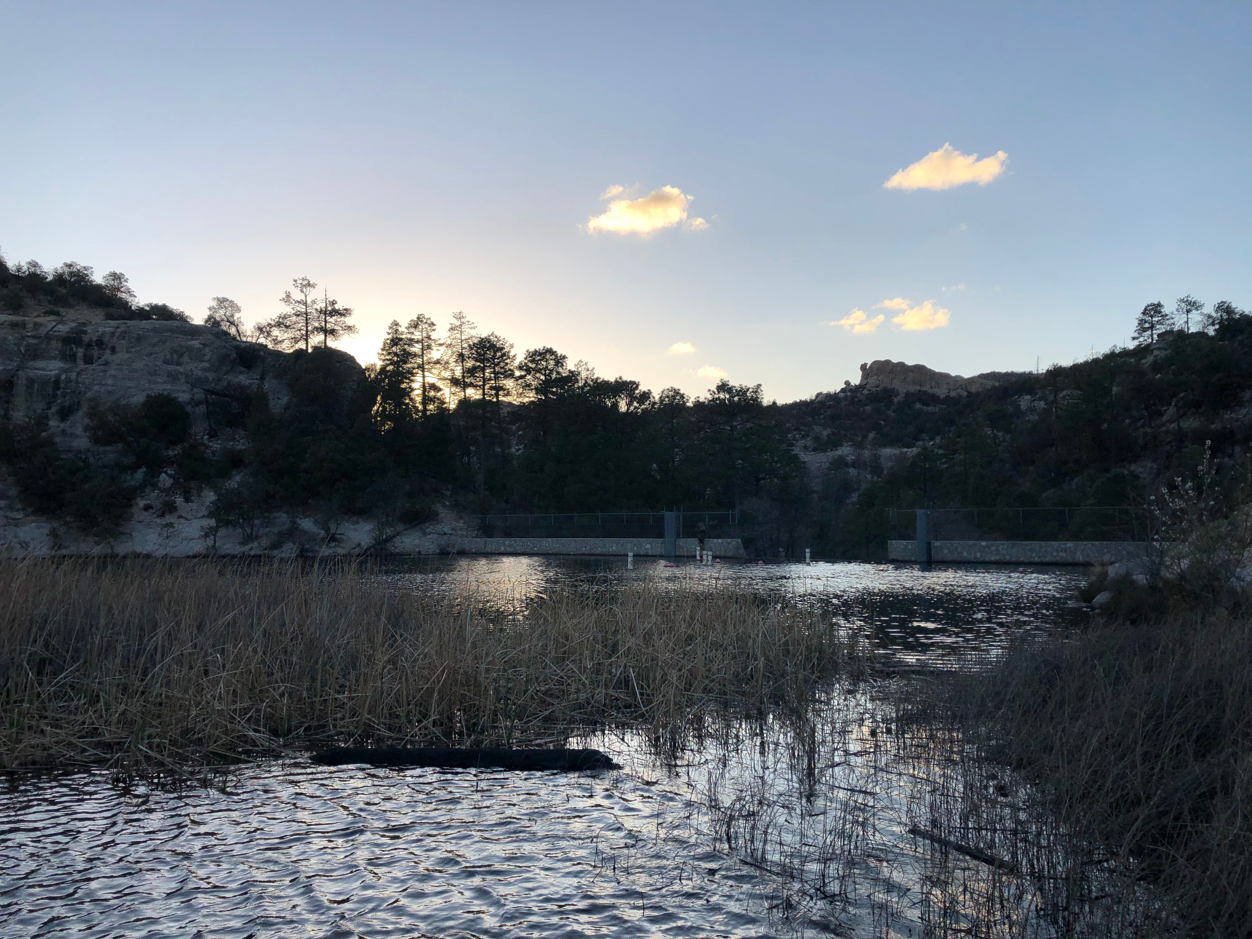 That visit was the highlight, because the rest of the trip was a bit of a disaster. Though it is now reaching into the 90s here in The Valley, our campground in the Coronado National Forest was at 7000 feet of elevation. So it was cold, and extremely windy. It was also beautiful——a lovely little lake a short walk from our site——and basically empty. Like a lot of Arizona, the area around Mount Lemmon features dozens of rock formations that would be the prize jewels of national parks in other states.